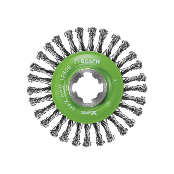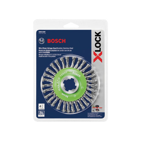 BOSCH X-LOCK® WBX409 Wire Wheel, 4-1/2 in Dia Brush, Stringer Bead Knotted Bristle, Stainless Steel Bristle