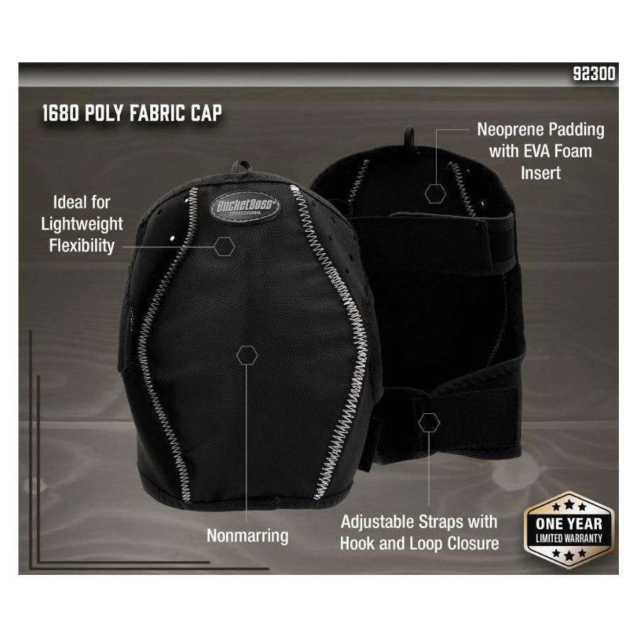 Bucket Boss® 92300 Flooring Shell Knee Pad, Poly Fabric Cap, EVA Foam/Neoprene Pad, Hook and Loop Closure