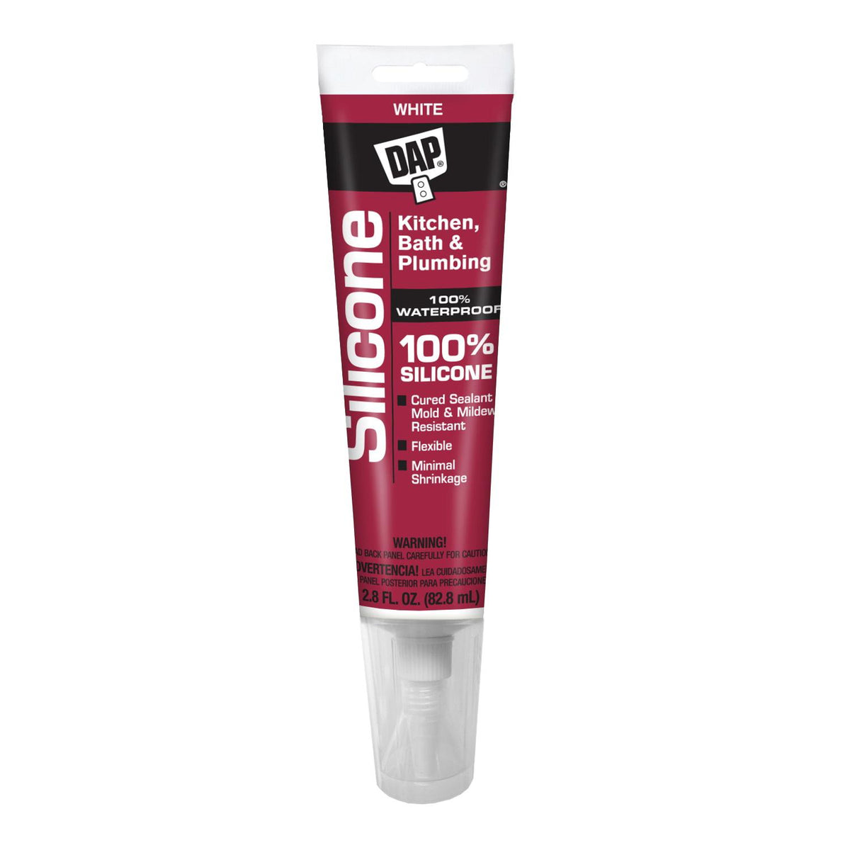 DAP® SteelStik™ 7079800750 Silicone Kitchen and Bath Sealant, Paste, White, Vinegar, Rubber Base, 24 hr Curing