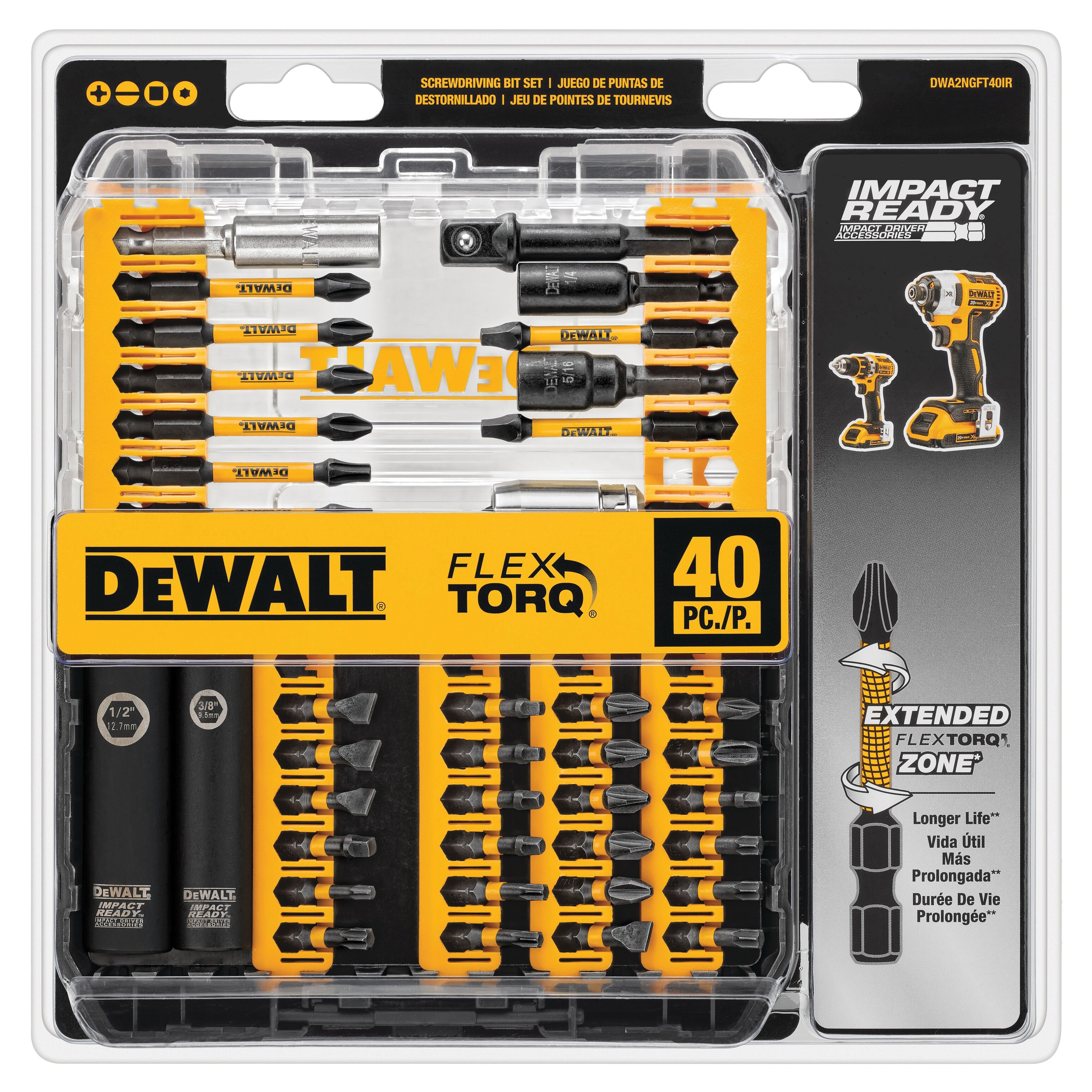 DeWALT® GUARANTEED TOUGH® IMPACT READY® FlexTorq™ DWA2T40IR Screwdriver Bit Set, 40-Piece