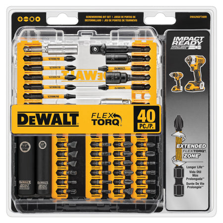 DeWALT® GUARANTEED TOUGH® IMPACT READY® FlexTorq™ Screwdriver Bit Set, Hex Shank, 1/4 in Shank, Steel, For Use With: Impact Drivers, 40 Piece