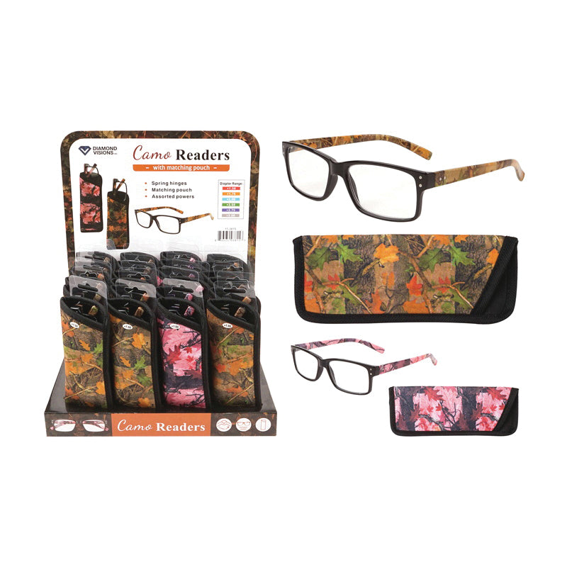 DIAMOND VISIONS 11-3815 Reading Glasses with Camo Pouch, +1.5, +2, +2.5, +2.75, +3 Diopter