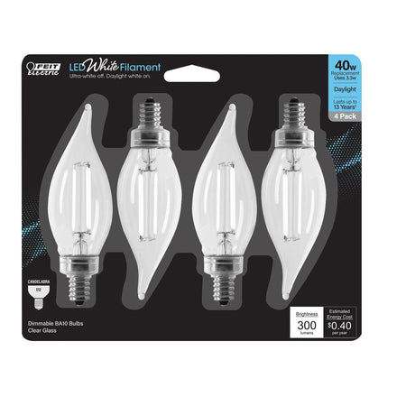 FEIT Electric BPCFC40950WFIL LED Light Bulb, 3.3 W, Flame Tip, Medium, 5000 K, 300 Lumens
