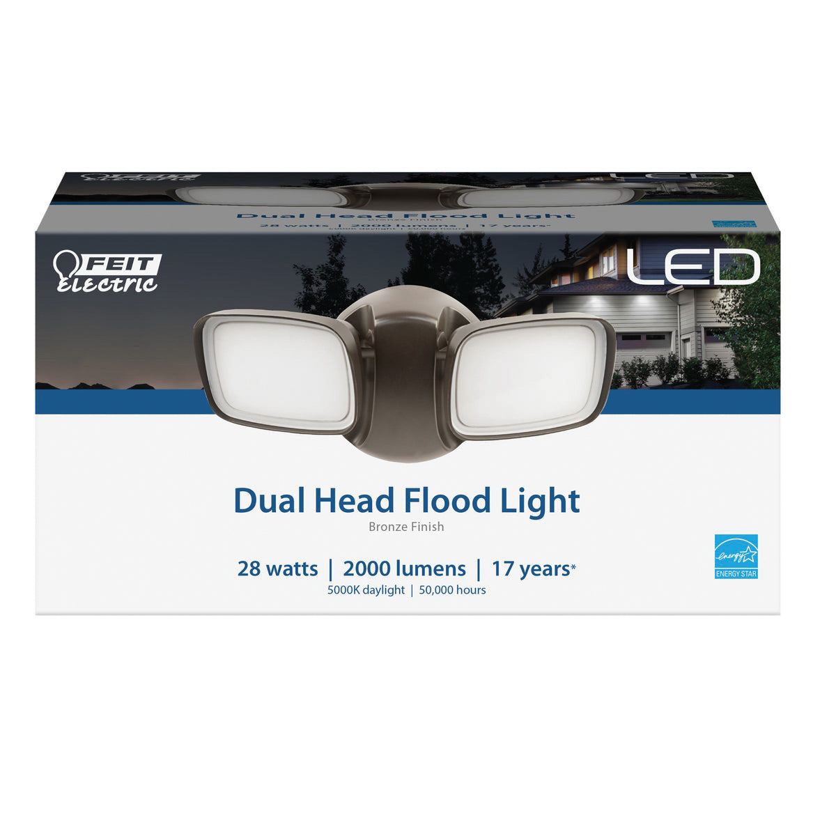 FEIT Electric S9DFL/850/BZ/V1 Outdoor Dual-Head Flood Light, 120 V, 28 W, LED Lamp, 2-Lamp, 2000 Lumens, 5000 K