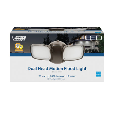FEIT Electric S9DFL/850/MOT/BZ Outdoor Dual-Head Flood Light With Motion Sensor, 120 V, 28 W, LED Lamp, 2-Lamp, 5000 K