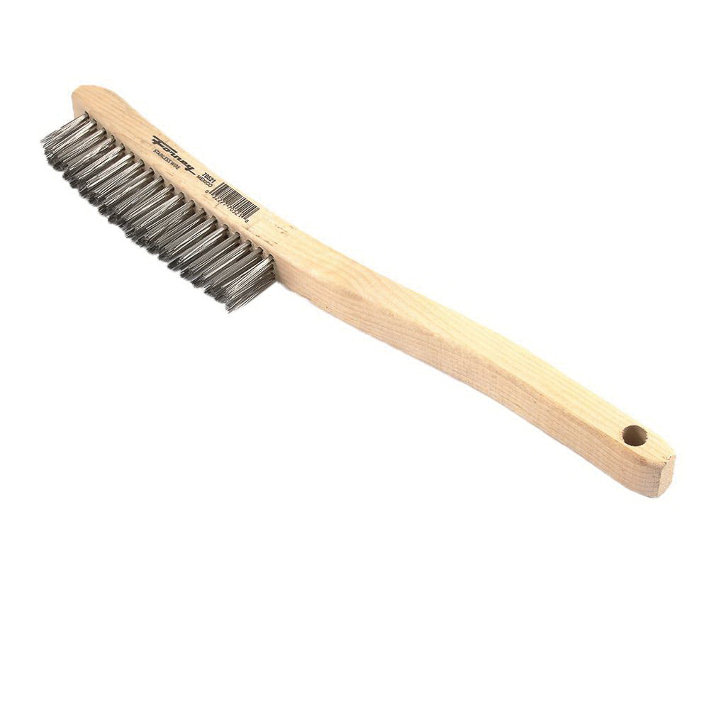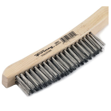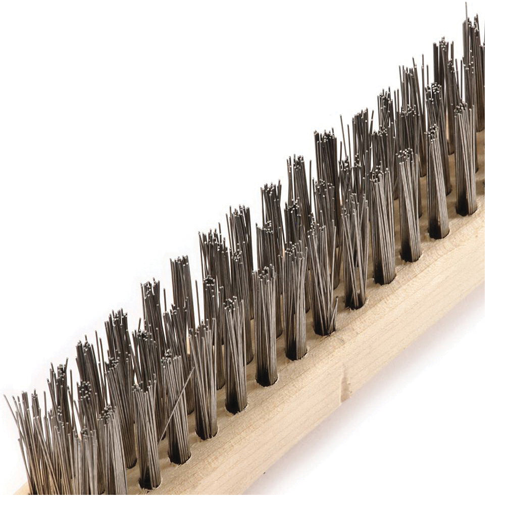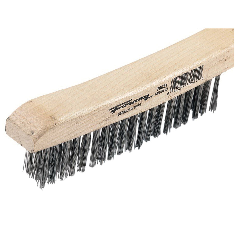 Forney® Scratch Brush, 3 x 19 Rows, Stainless Steel Bristle, 0.013 in Bristle Diameter, Long Handle, Wood Handle, 13-3/4 in Overall Length