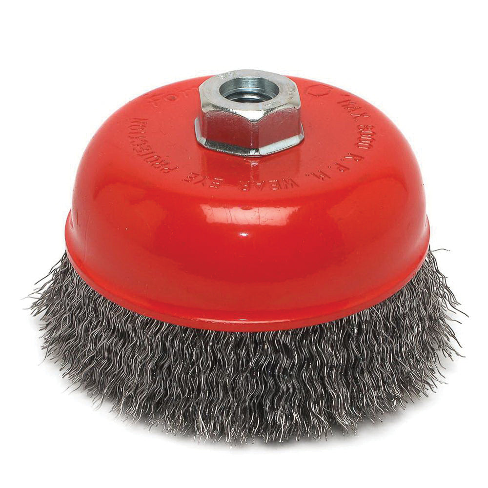 Forney® 72754 Cup Brush, 5 in Dia Brush, Crimped Bristle, 5/8 in Arbor