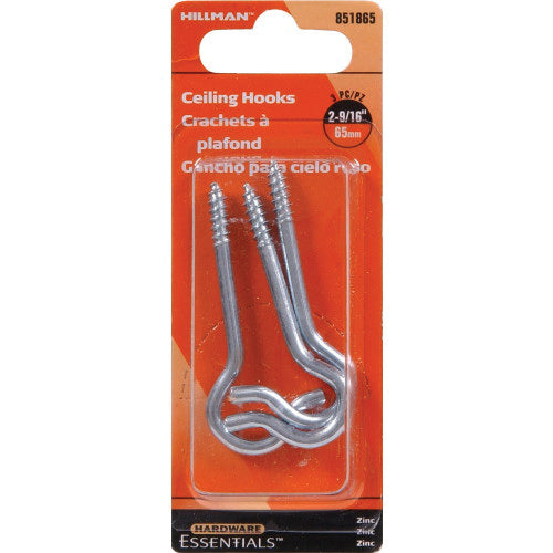 HARDWARE ESSENTIALS™ 851865 Ceiling Hook, 0.162 in Thread, Steel, Zinc-Plated, 2-9/16 in L, 25 lb Work Load