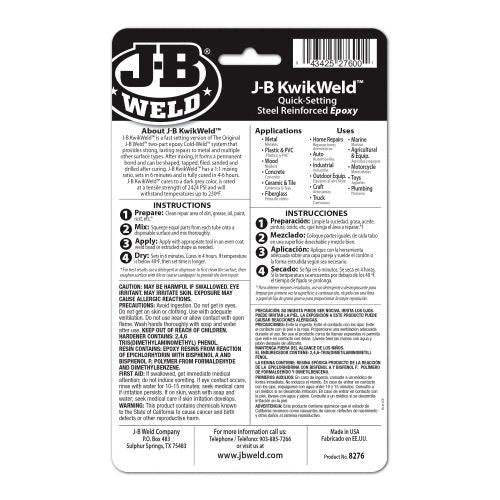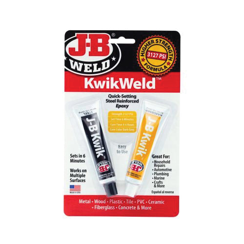 J-B Weld KwikWeld 8276 Epoxy Resin and Hardener, Liquid Part B, Paste Part A, Dark Gray/Off-White, Strong Pungent, 2 oz