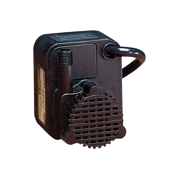 Little GIANT® Direct Drive Submersible Pump, Model: PE-1, 115 V, 0.6 A, 36 W, 60 Hz, 1/125 hp, 2.83 gpm Flow Rate, 1/2 in Discharge, 3 psi, 120 deg F, Plastic, 3.48 in L x 2.75 in W x 3.58 in H, Additional Information: 7 ft Shut-Off, MNPT Discharge, Screened Suction