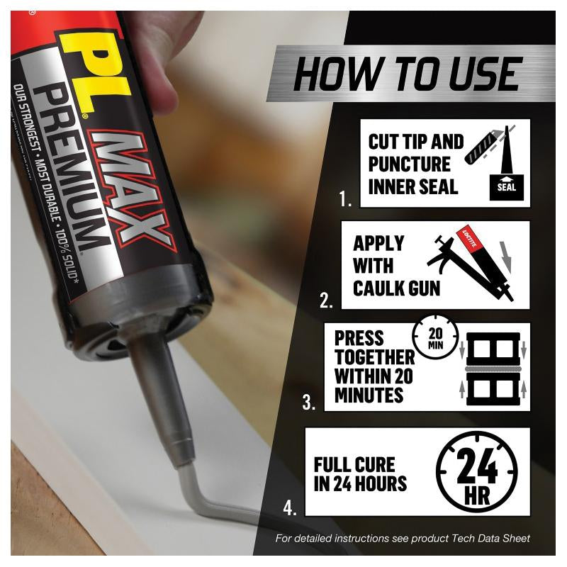 - PL Premium® Max is Loctite's strongest, most durable construction adhesive that remains 100% solid after curing for a wide variety of projects for consistently successful results