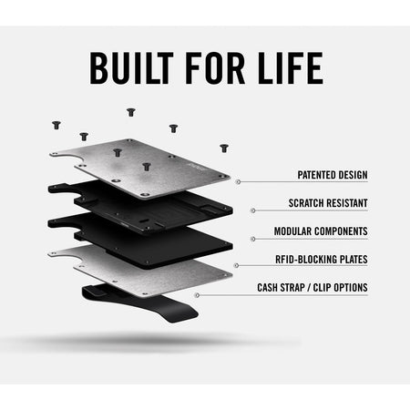 Ridge™ Wallet, 1 to 12 ID Cards Capacity, Modular, Aluminum, Royal Black, 86 mm Overall Length, 54 mm Overall Width, 6 mm Overall Height, Additional Information: Cash Strap Style, Anodized Finish