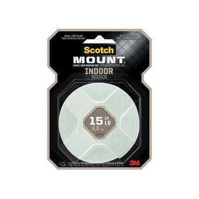 Scotch® Scotch-Mount™ Double-Sided Mounting Tape, 1 in Width, 125 in Length, White, Acrylic Adhesive, Acrylic Backing, 50 to 100 deg F