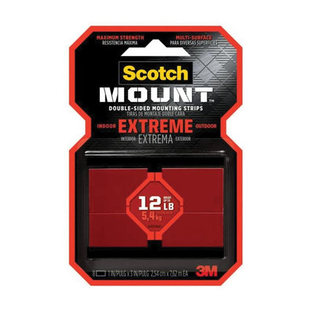 Scotch® Scotch-Mount™ Extreme Double-Sided Mounting Strip, Black, Acrylic Foam Backing, Acrylic Adhesive, 2.54 cm Width, 7.62 cm Length, 10 to 37.8 deg C, Resists: Weather, 0.68 kg Weight