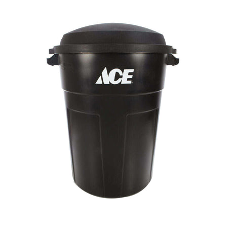 ACE® Garbage Can, 32 gal Capacity, Round Shape, Snap-Fit Lid, Plastic, Black, 22 in Width, 33.3 in Height, 25-1/2 in Depth