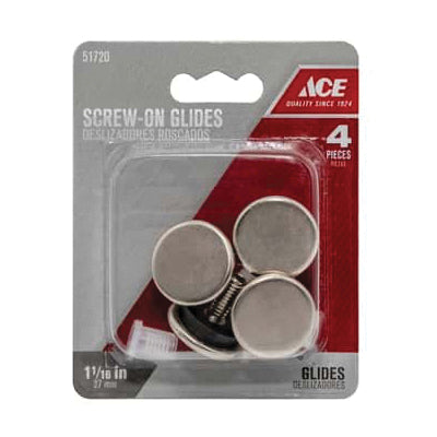 ACE® Chair Glide, 1-1/16 in Base Diameter, Nickel Base, Silver Base, Additional Information: Screw-On Attachment Method