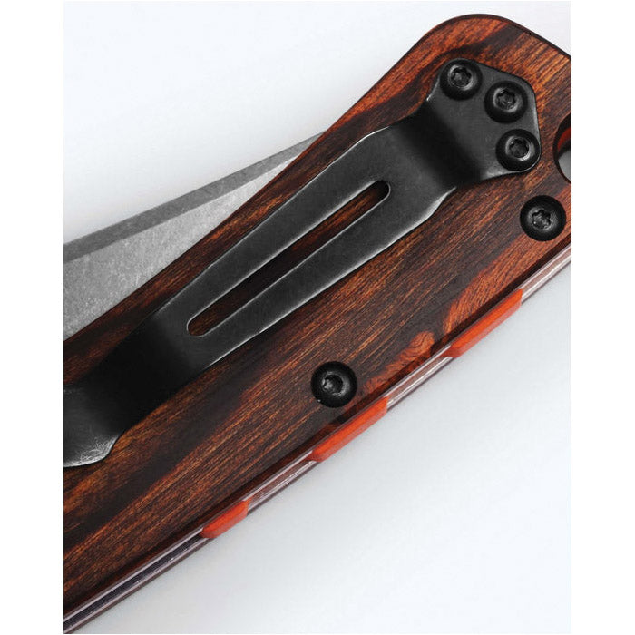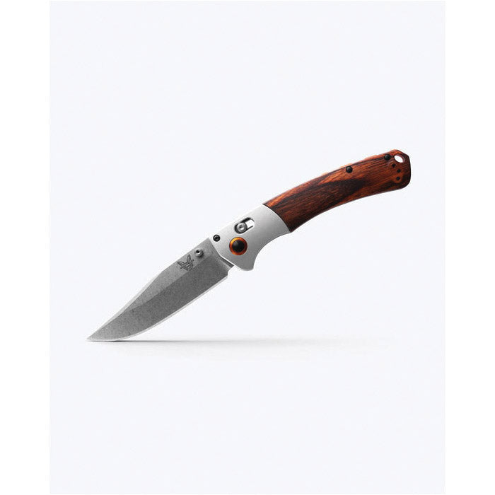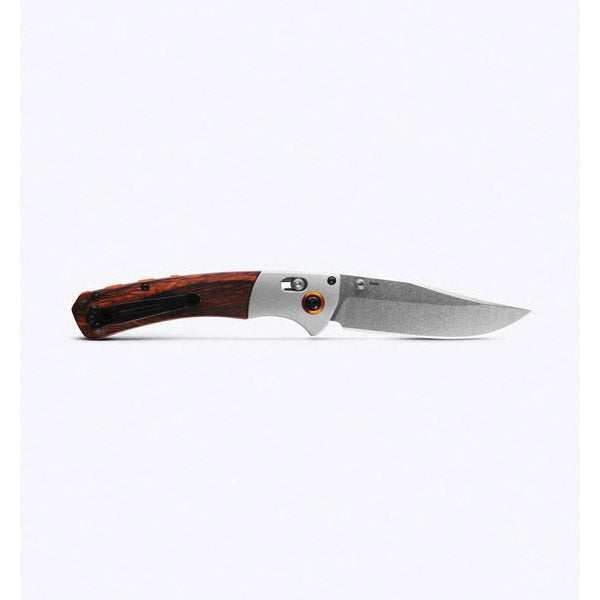 Benchmade® Hunting Knife, Clip-Point Blade, 4 in Blade Length, 0.124 in Blade Thickness, Stainless Steel Blade, Stonewash, Wood Handle, Dark Brown Handle, AXIS® Locking, 5.33 in Closed Length, 9.3 in Overall Length, Additional Information: 0.6 in THK Handle
