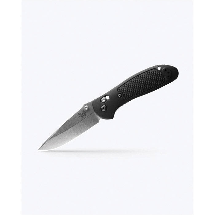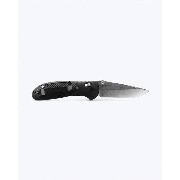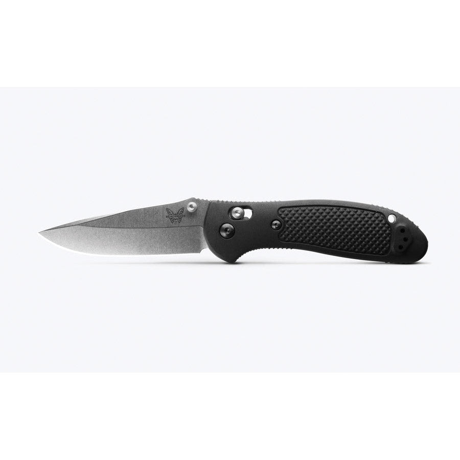 Benchmade® Hunting Knife, Drop-Point Blade, 3.45 in Blade Length, 0.115 in Blade Thickness, Stainless Steel Blade, Satin, Grivory® Handle, Nylon Handle, Black Handle, AXIS® Locking, 4.62 in Closed Length, 8.07 in Overall Length, Additional Information: 0.64 in THK Handle