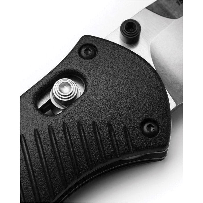 Benchmade® Hunting Knife, Drop-Point Blade, 3.6 in Blade Length, 0.121 in Blade Thickness, Stainless Steel Blade, Satin, Valox® Handle, Black Handle, AXIS® Locking, 4.79 in Closed Length, 8.45 in Overall Length, Additional Information: 0.65 in THK Handle