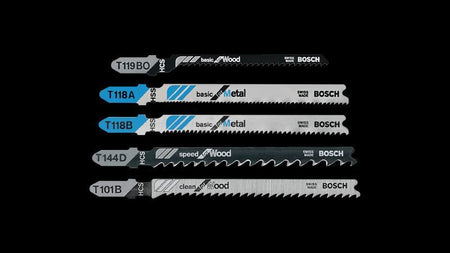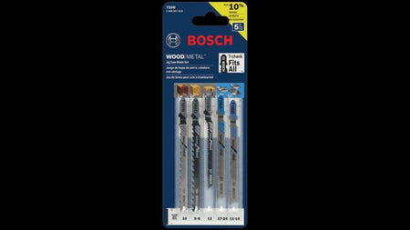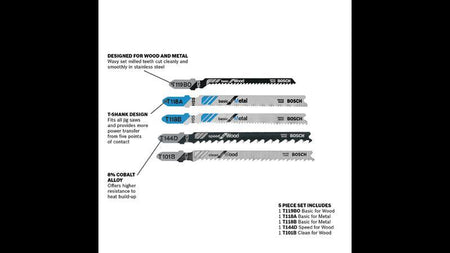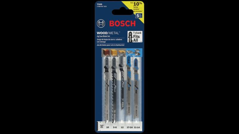 BOSCH T500 Jig Saw Blade Set, Cut Materials: Ferrous, Non-Ferrous Metals, Wood, 5-Piece