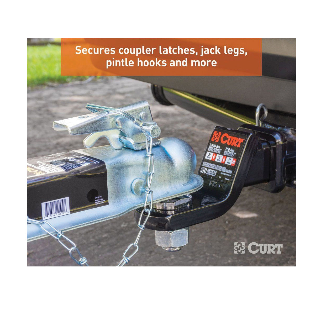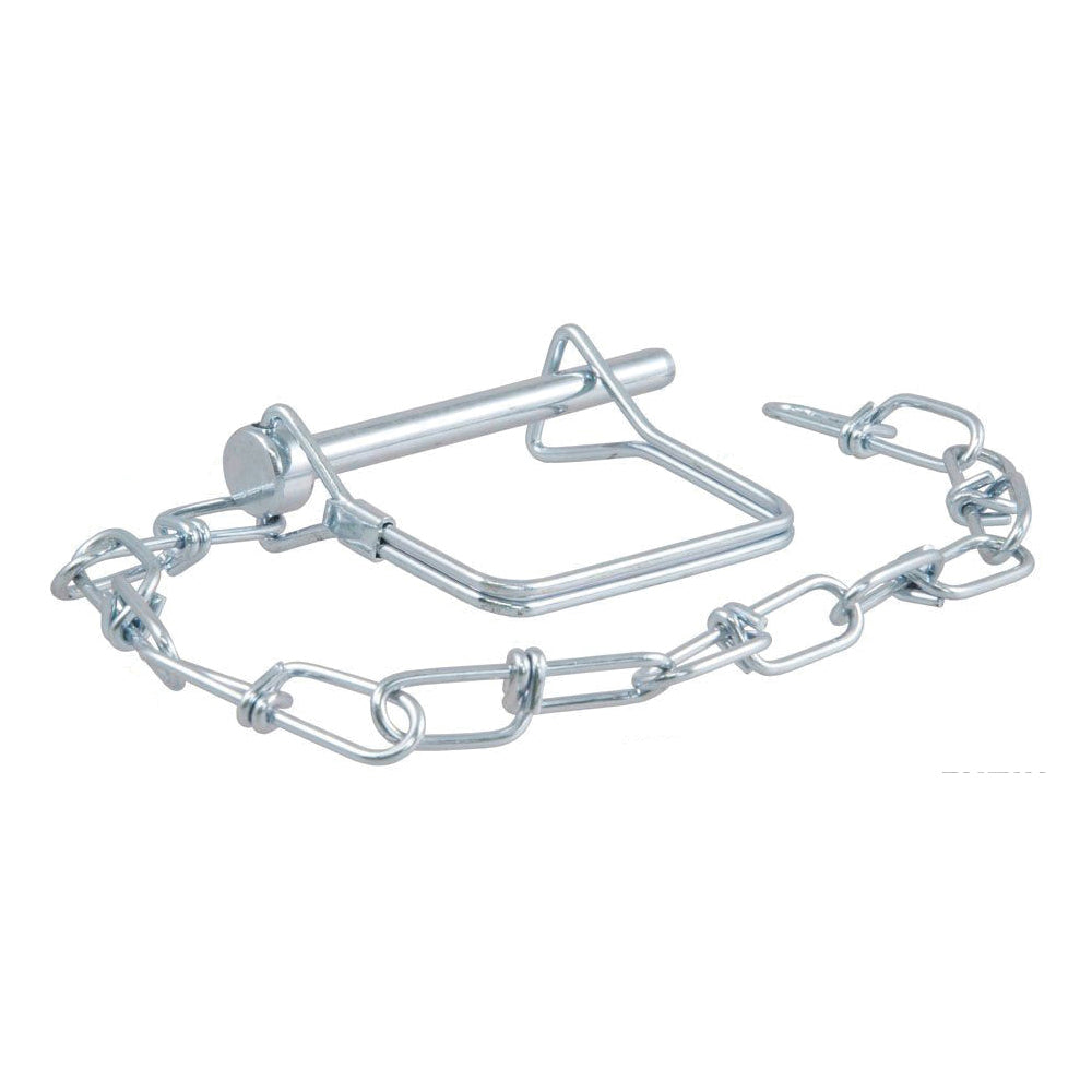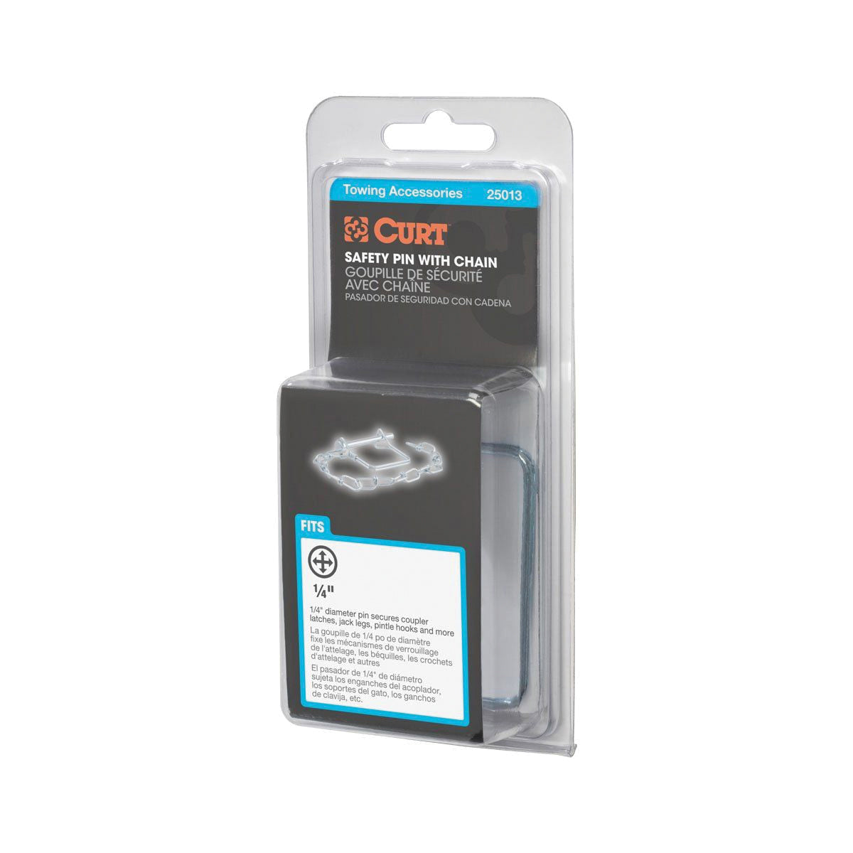CURT™ Safety Pin, 1/4 in Pin Dia, Carbon Steel, Zinc-Plated, Clear, 2-3/4 in Overall Length, Additional Information: 12 in Chain L