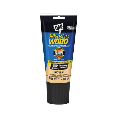 DAP® Wood Filler, 3 oz Net Content, Paste Form, Natural, Odor/Scent: Mild, Composition: Limestone, Fly Ash, Titanium Dioxide, Quartz, Attapulgite, Phenolphthalein, 3 to 6 hr, 36 hr Dry Time, 40 to 100 deg F, 3.2 g/L VOC, Applicable Materials: Wood, Additional Information: 11.88 in L x 3.19 in W x 6.13 in H Dimensions, 24 months Shelf Life