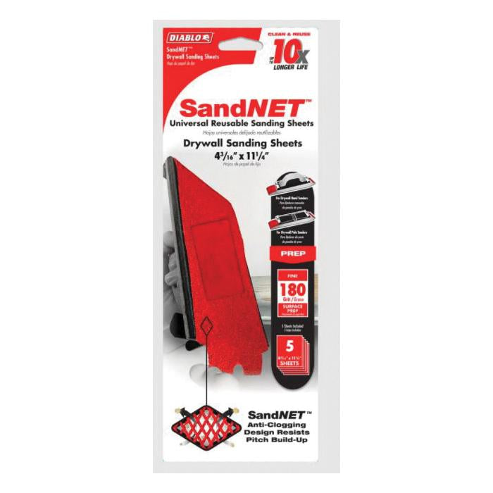 DIABLO® SandNET ™ DNS431180H05G Reusable Drywall Sanding Sheet, 11-1/4 in L, 4-3/16 in W, 180 Grit, Fine Grit