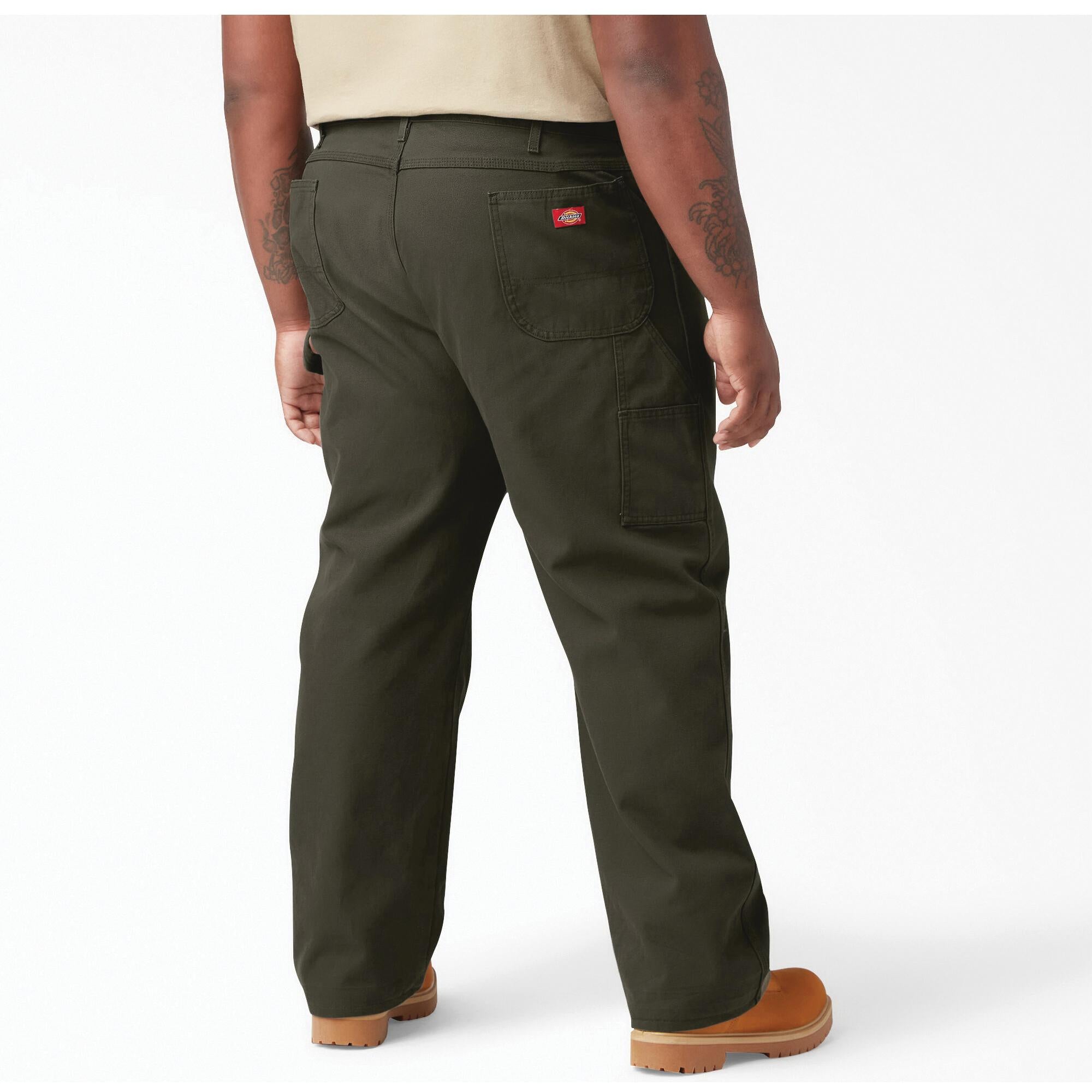 Dickies® Men's Heavyweight Carpenter Pants, Model: 1939, 32 Waist, 30 Length, Relaxed Fit, Straight Leg Style, Rinsed Moss Green Manufacturer Color, Cotton, Button Closure, Occasions: Work, 12 oz Fabric Weight, Additional Information: Imported Material
