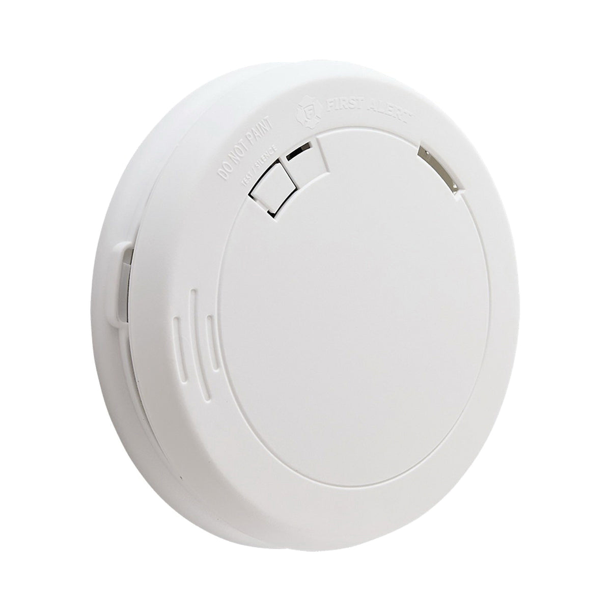 - The FIRST ALERT P1210 slim photoelectric smoke alarm features a built-in 10 year lithium battery that provides continuous power for the life of the fire detector, an end of life warning lets you know when the detector should be replaced