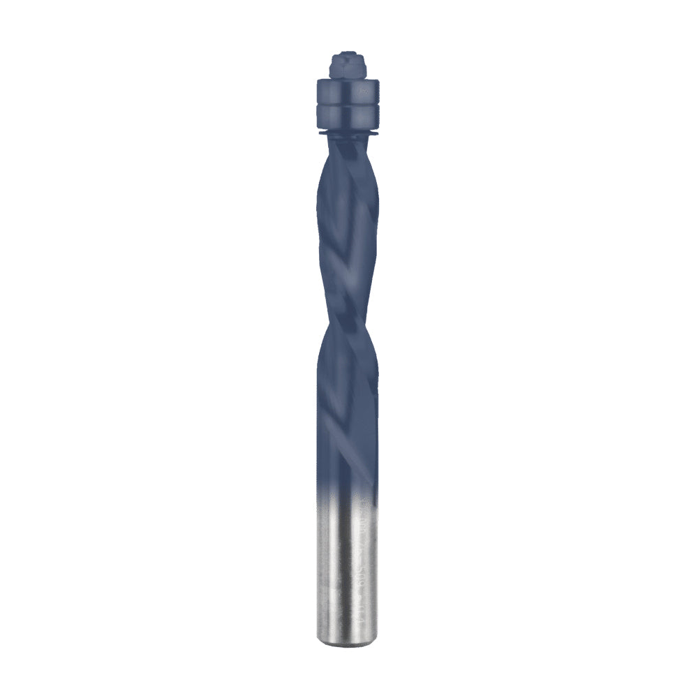 - Down cut spiral produces an extra clean top edge on delicate surfaces