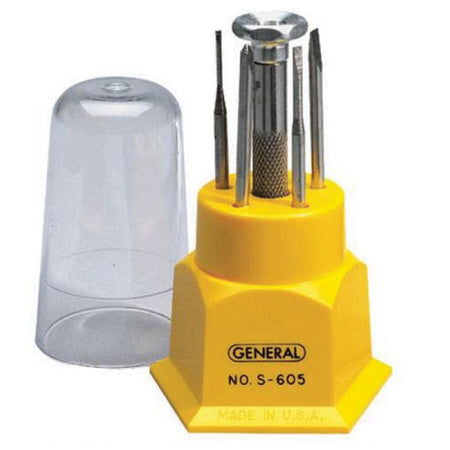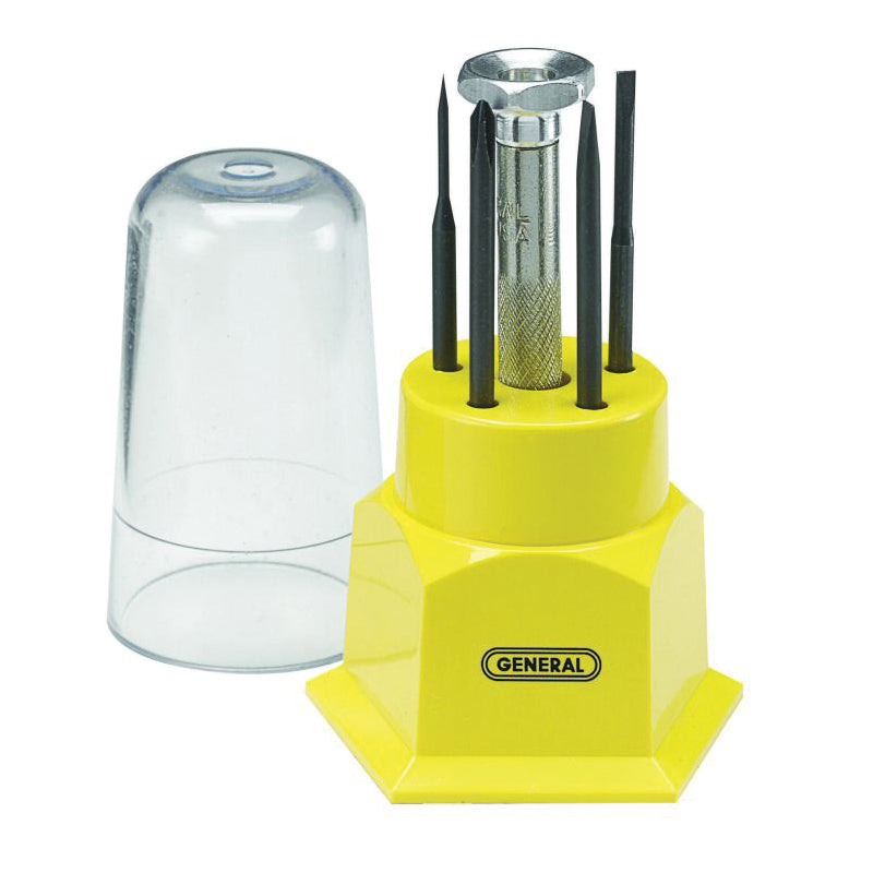 - Four tempered steel straight blades and one No. 0 cross point blade