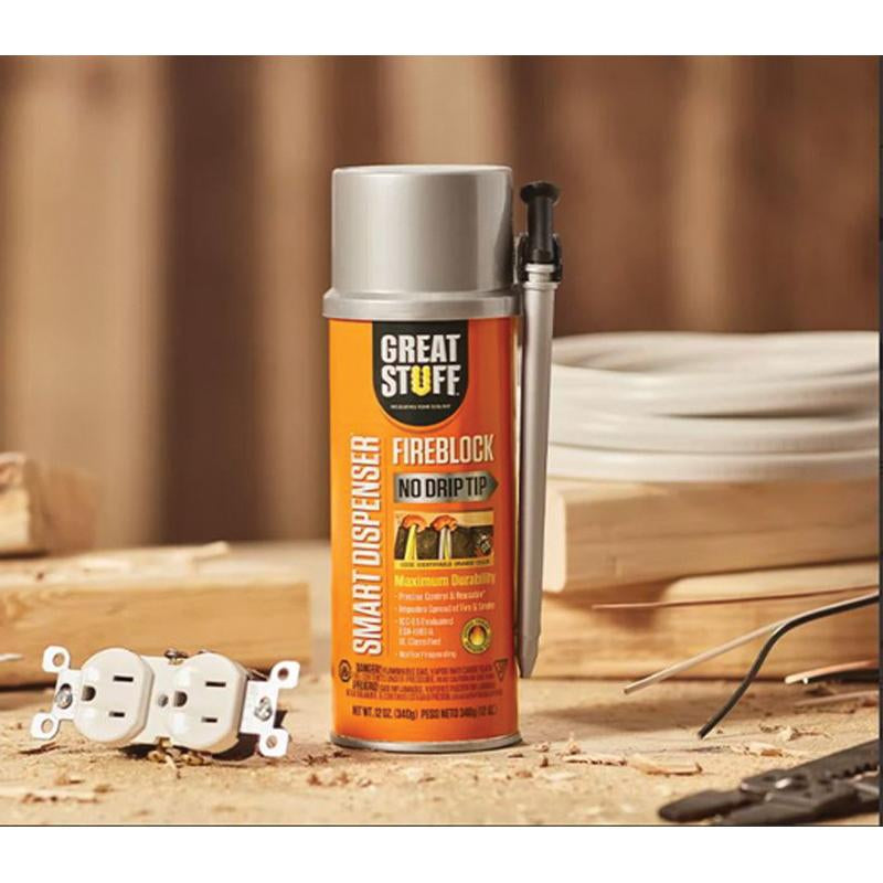 GREAT STUFF™ 99112831 Fire Block Insulating Sealant With Smart Dispenser™, Foam, Orange, 8 hr Full Cure, 12 oz, Can