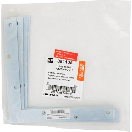 HARDWARE ESSENTIALS™ Flat Corner Brace, 8 in Length, 1 in Width, Steel, Finish: Zinc-Plated, Additional Information: 1/4 in THK Dimensions, Flagged Package
