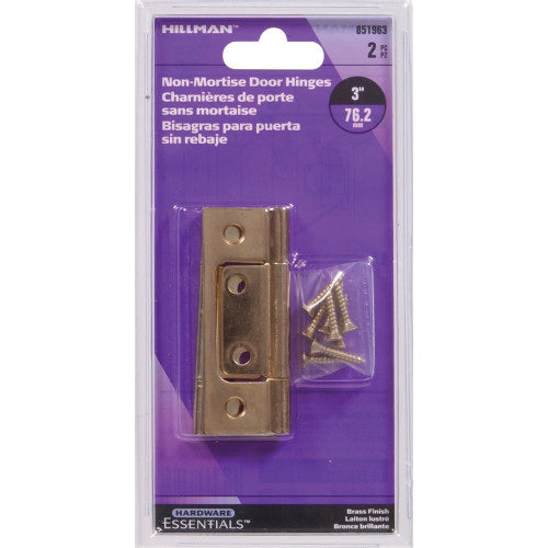 HARDWARE ESSENTIALS™ 851963 Non-Mortise Hinge, Steel, Satin Brass, Fixed Pin, Screw-In/Surface Mounting
