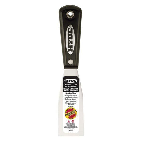 HYDE® Stiff Chisel Putty Knife, Full Tang Blade, 1-5/16 in Blade Width, High Carbon Steel Blade, Nylon Handle