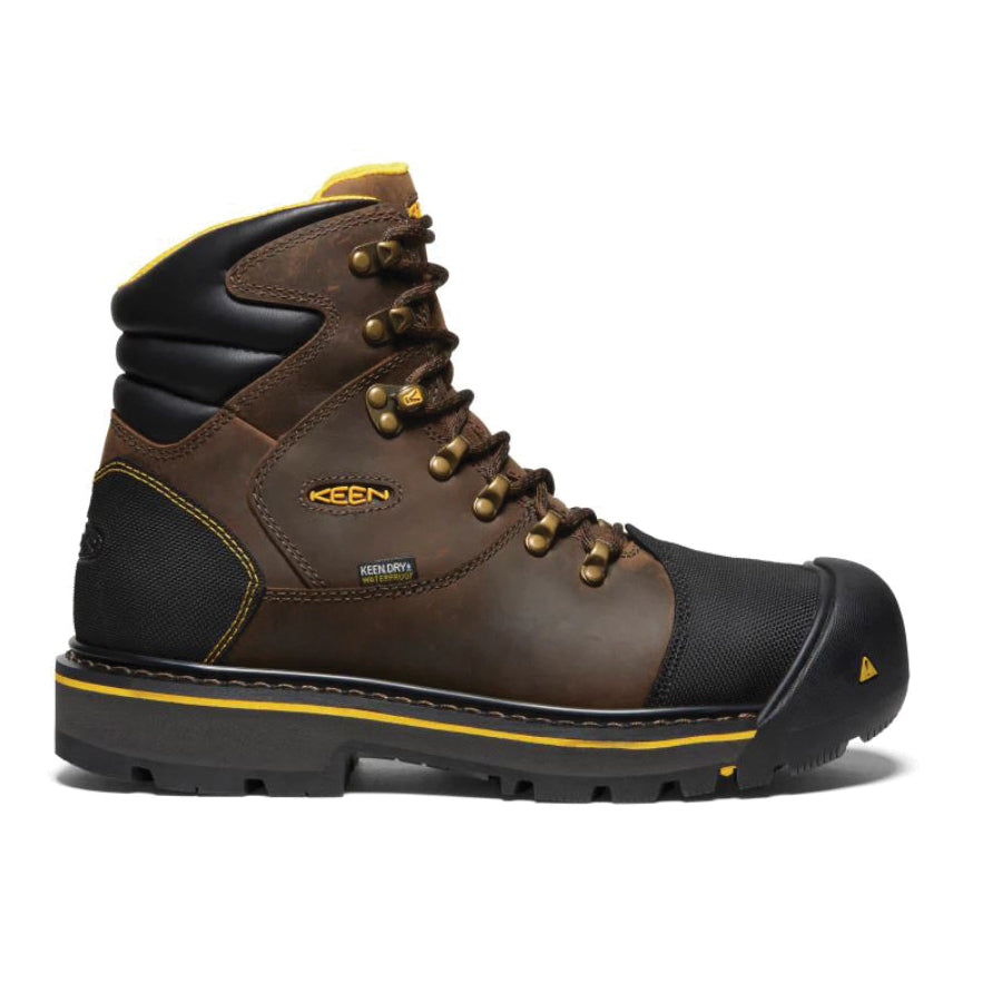 KEEN 1009174-7-D Men's Heavy-Duty Milwaukee Boots, 7, D, Dark Earth, Steel Toe, Leather Upper, Rubber Outsole