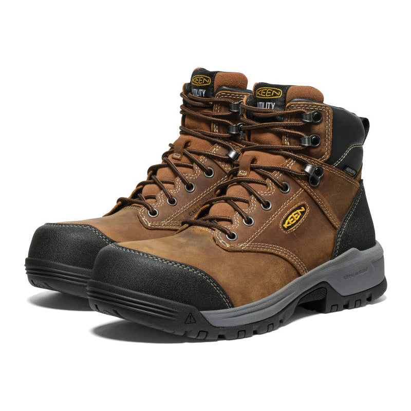 KEEN 102941995EE Evanston Boots, 9.5, EE, Bison/Black, Carbon Toe, Leather Upper, Rubber Outsole, Lace Closure