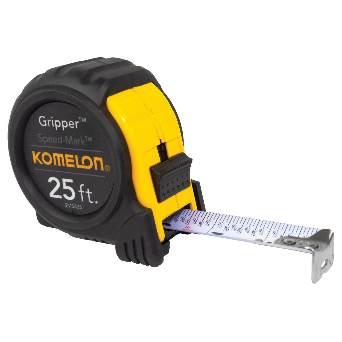 KOMELON® Gripper™Speed Mark™ SM5425 Tape Measure, 25 ft L Blade, 1/8 in Graduation