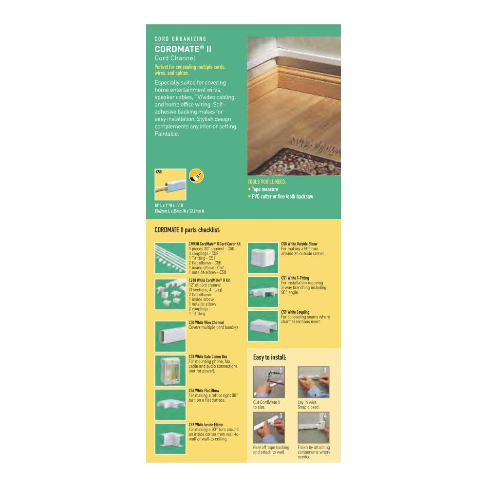 Wiremold® CORDMATE® II C50 Wire Channel, 60 in L, 1 in W, 1/2 in H