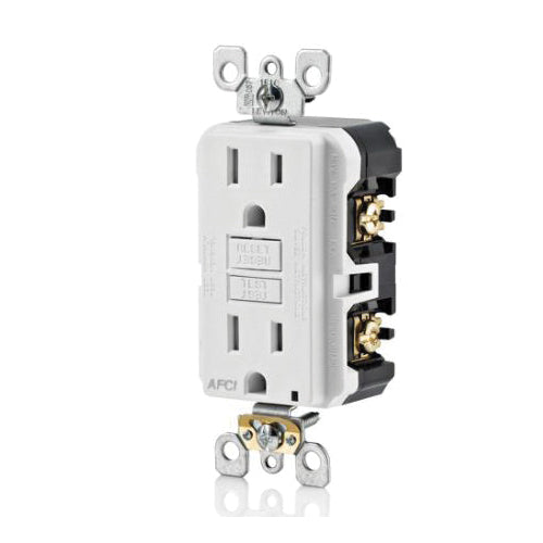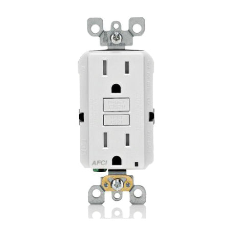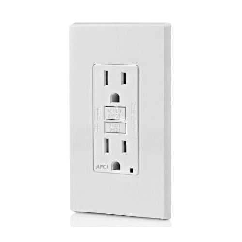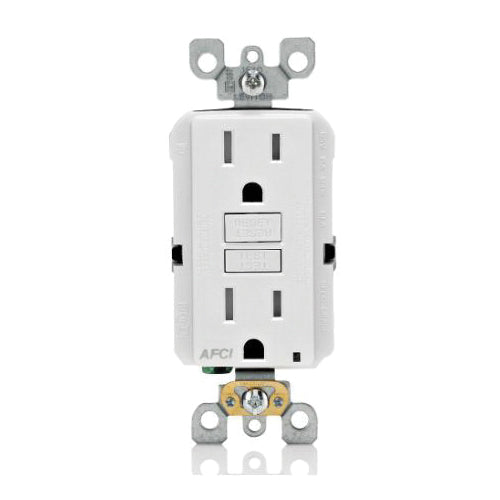 Leviton® AFTR1 Series AFTR1-KW Receptacle, 125 VAC, 15 A, 2 -Pole, 3 -Wire, White, NEMA 5-15R