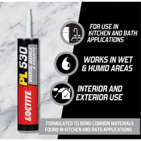 • Kitchen and bath applications - engineered specifically for bonding kitchen and bath materials like mirrors, marble and granite