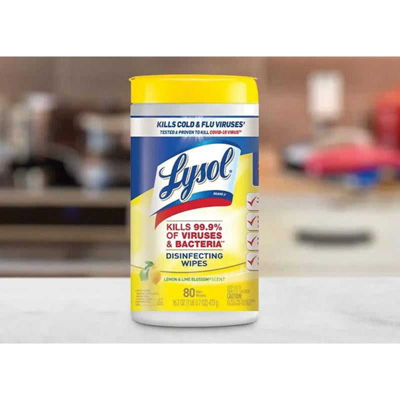 Lysol® 0-19200-89346 Disinfecting Wipes, Lemon, Lime Blossom, 80 Count, Canister