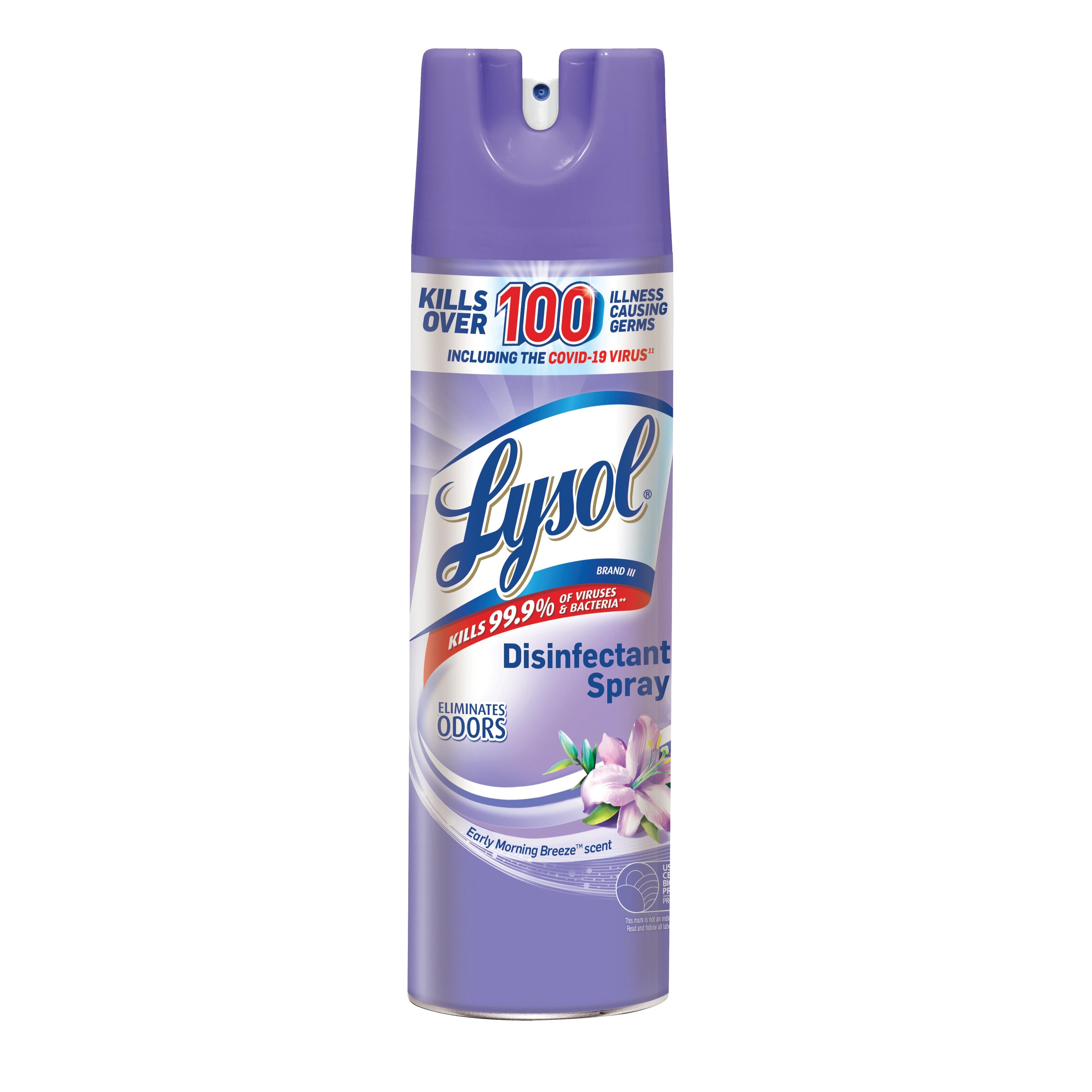 Lysol® Disinfectant Spray, 12.5 oz Net Content, Aerosol Can Container, Liquid Form, Odor/Scent: Early Morning Breeze, Clear, Composition: Ethanol, Butane, Propane