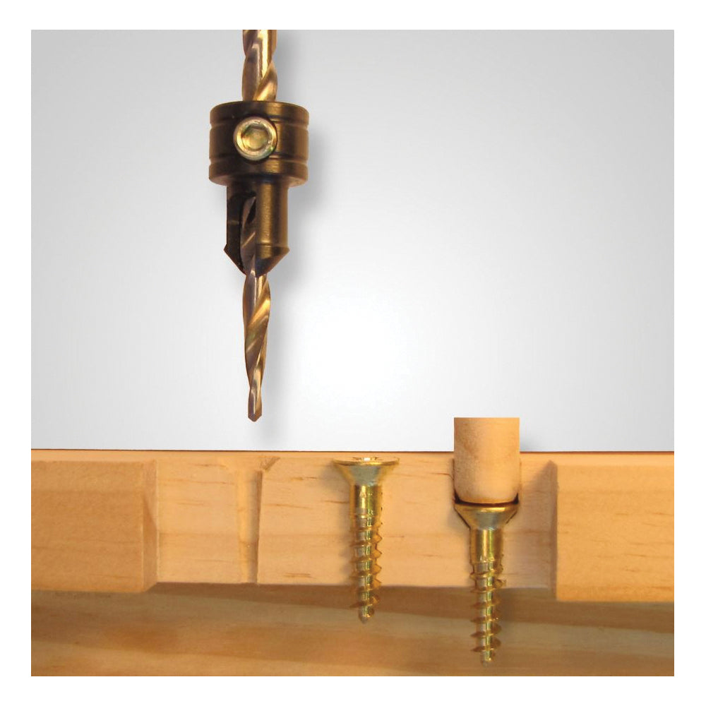 - Drill a pilot hole and countersink or counterbore for tapered screws or use to drill a clearance hole for straight screws