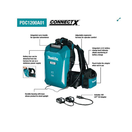 Makita® PDC1200A01 Portable Backpack Power Supply, 36 V, 33.5 Ah Battery Capacity, Lithium-Ion Battery