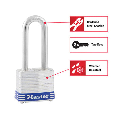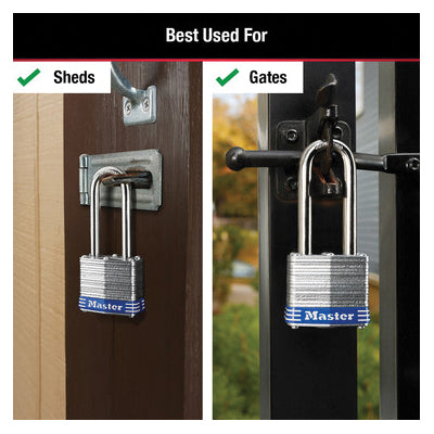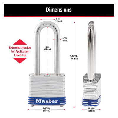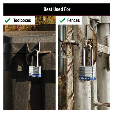 Master Lock® 3DLH Laminated Padlock, 9/32 in Dia Shackle, Dual Ball Bearing Locking Mechanism, Steel, Silver