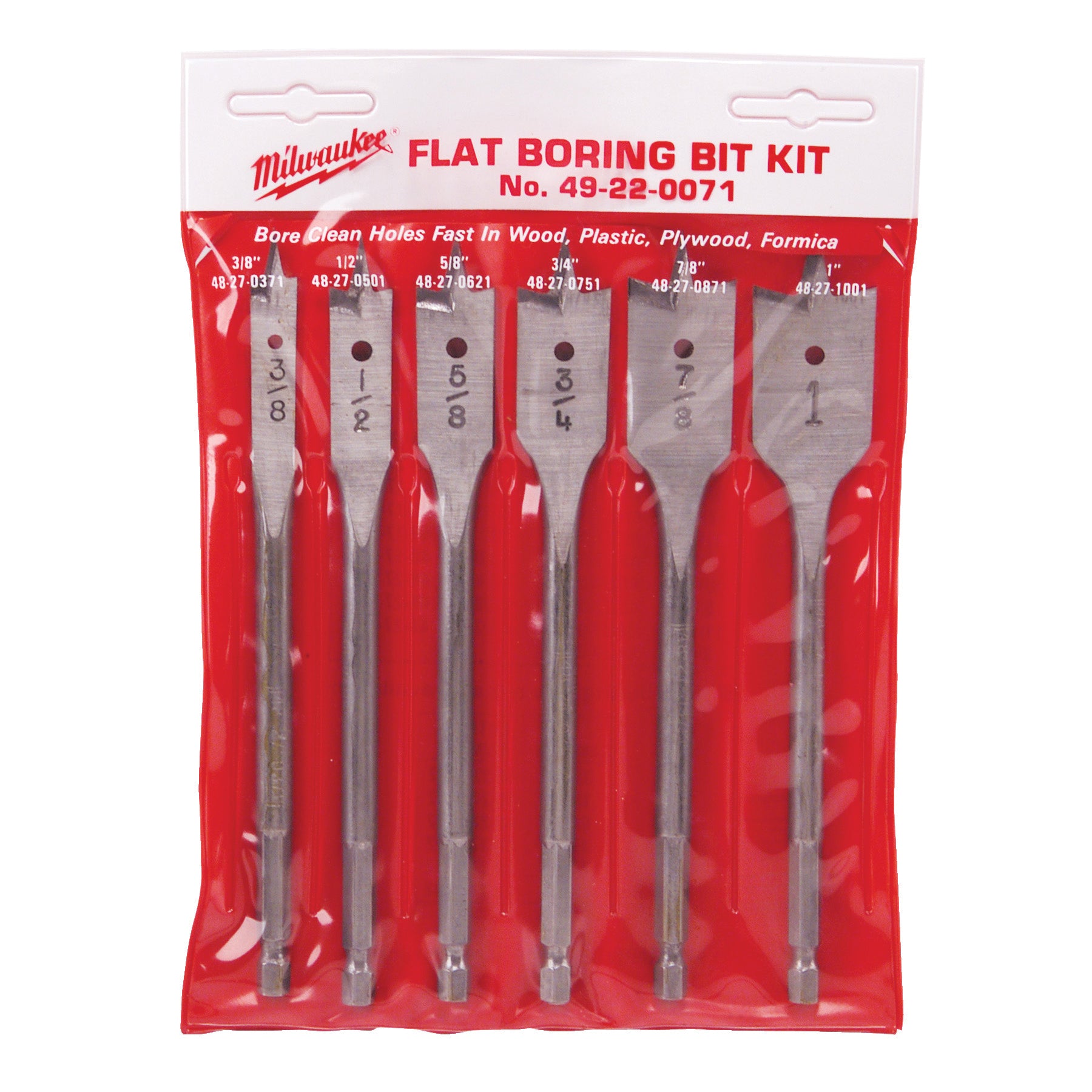 Milwaukee® 49-22-0071 Flat Boring Bit Set, 3/8 in Min Drill Bit, 1 in Max Drill Bit, 6 -Piece, Carbon Steel