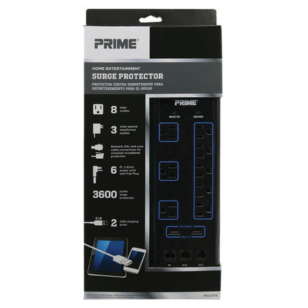 PRIME® PB523118 Multimedia Surge Protector, 125 V, 15 A, 8 -Outlet, 6 ft L Cord