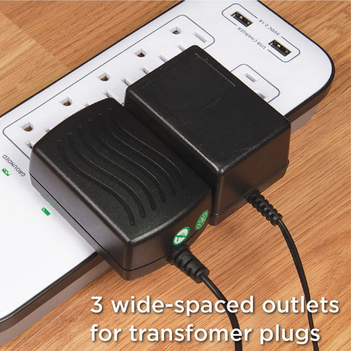 - Five grounded outlets and three wide spaced outlets to fit oversized transformer plugs
