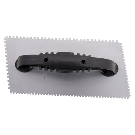 QLT® 220 Economy Notched Trowel, 3 in W Blade, 9 in L Blade, Flat V Notch, 1/8 x 1/8 x 1/16 in, 1/8 x 1/8 x 1/8 in Notch